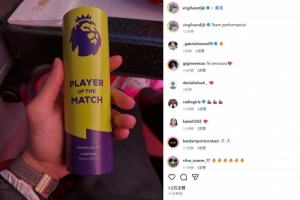 范戴克也在赛后通过社媒晒出英超官方的全场MVP奖杯,并配文:“团队表现!”