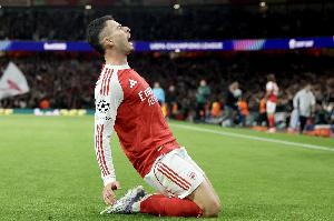 数据统计显示,马丁内利单赛季在国内杯赛+欧战共计已经打进10球,也是94-95赛季伊恩·赖特(12球)以来枪手首人。