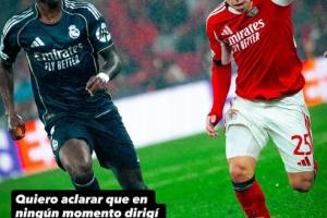 歧视维尼修斯猴子!本菲卡球员:从未歧视,很遗憾皇马球员威胁我