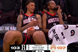 GIF-杜兰特和小贾一人一个铁!唐斯篮板!比赛要没了呀!
