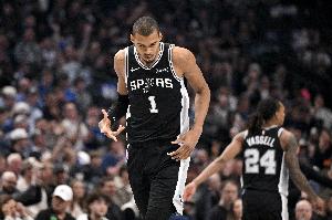 体育资讯2月24日讯 NBA常规赛,马刺114-103力克活塞,取得9连胜。