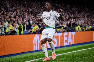 本场比赛,维尼修斯为皇马打进了锁定胜局的进球。进球后,维尼修斯再次来到角旗区用舞蹈的方式庆祝进球。