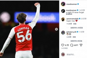 现年16岁零73天的道曼成为英超历史最年轻进球者,他被评为本场比赛最佳球员,道曼社媒晒出比赛照片,配文:“我永远不会忘记的一个夜晚。”