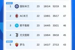 下一篇: 意甲积分榜:国米先赛取胜领先第2米兰8分!尤文稍后出战